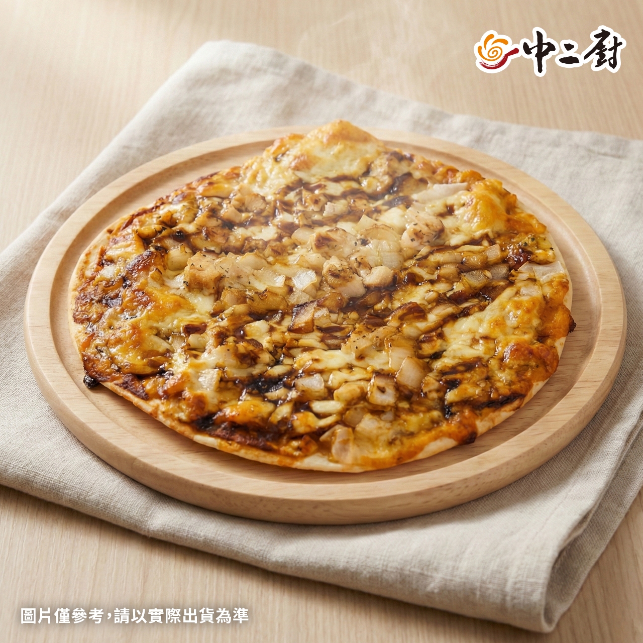 餅皮【中筋麵粉、水、大豆沙拉油、糖、鹽、即發酵母[酵母、聚氧化乙烯(20 )山梨醇酐單硬脂酸酯、抗氧化劑(維生素C)、阿拉伯膠])、摩扎瑞拉乾酪絲【殺 菌牛奶、鹽、乳酸菌、凝乳酵素、馬鈴薯澱粉】、美式燒烤醬【水、高果糖糖漿、砂